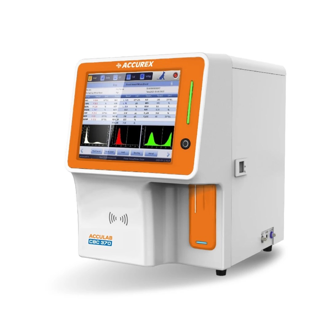 Buy the Best Automated Hematology Analyzer– Acculab CBC 370. This 3-part differential Hematology Analyser Machine is Truly Automated for Cost-effective, Low maintenance, advanced microscopic testing, calibration, sampling, dilution, mixing, printing, and dormancy.