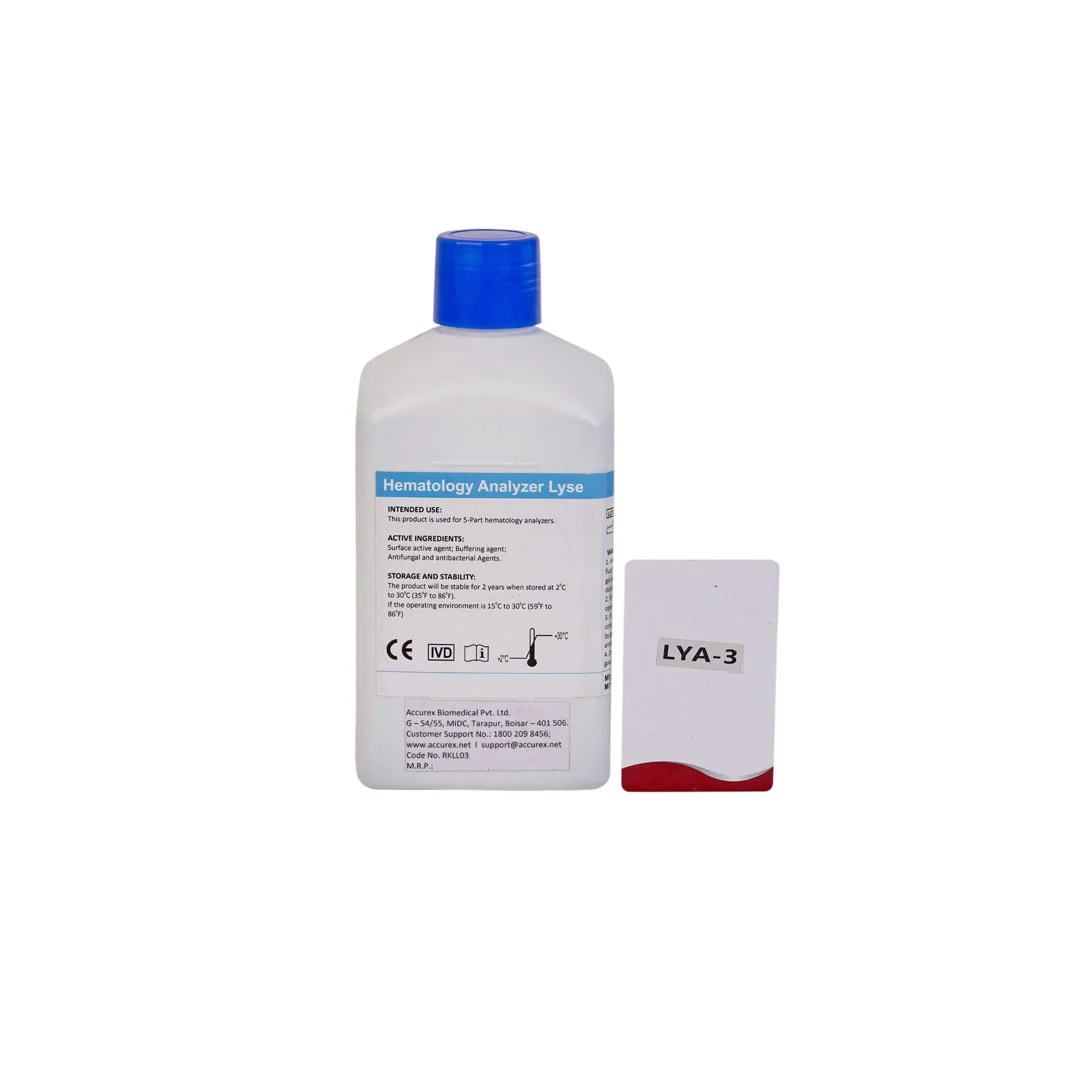 Buy Hematology Analyzer Lyse (LYA 3) 1L Online from Accurex. Used for in-vitro quantitative detection of white blood cells number in whole blood & hemoglobin concentration, etc. Whole Blood Lysing Accurex Reagents are used to prepare leukocytes from whole blood for immunofluorescence measurements on optical flow cytometers/