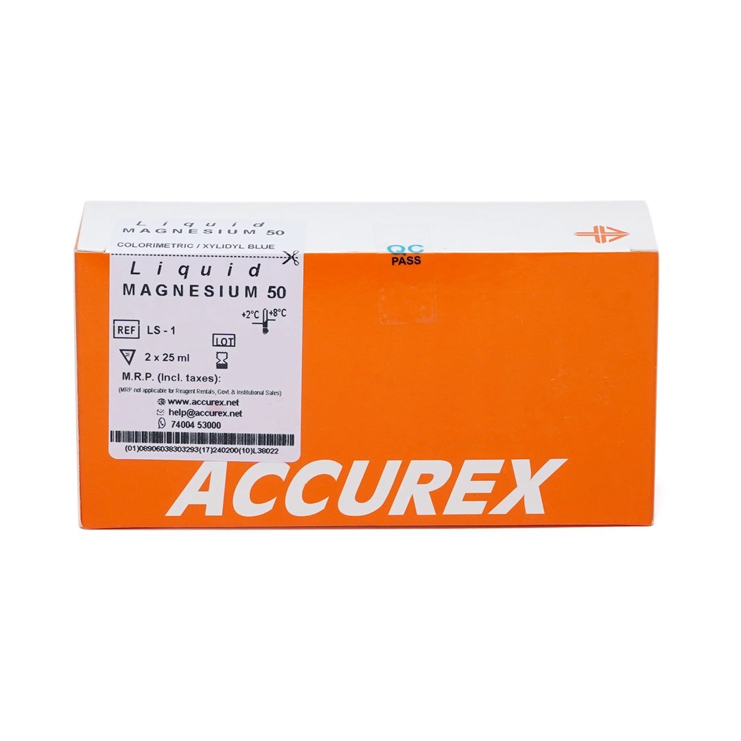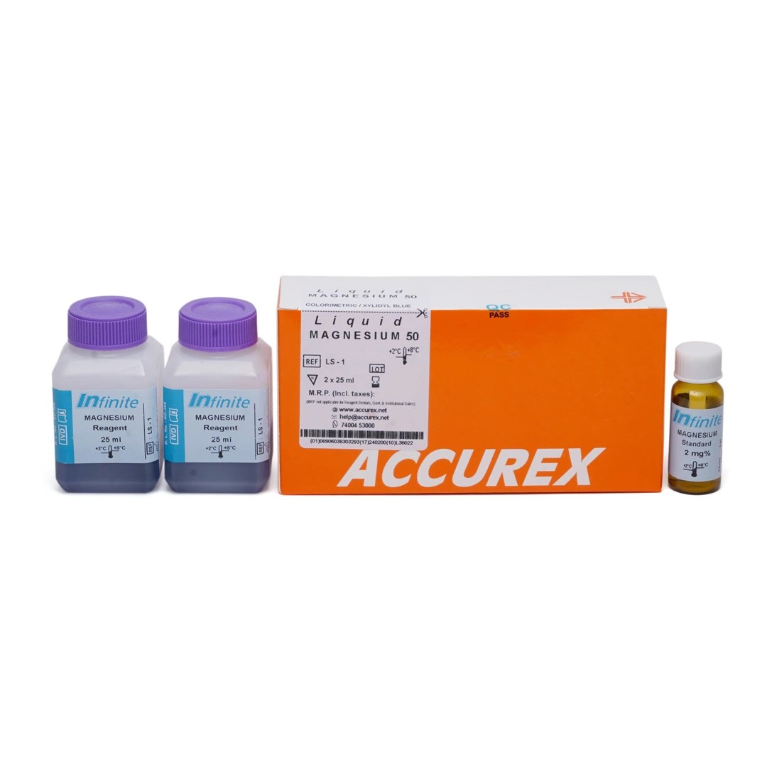 Magnesium ions react with xylidyl blue in an alkaline medium to form purple coloured complex. The intensity of the purple color is directly proportional to the concentration of magnesium in the specimen.